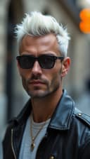 "ai fashion week white male model in futuristic streetstyle fashion"