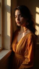 "warm portrait of middle eastern woman in a cozy room"