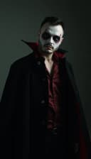 "white man in vampire costume moody lighting mysterious vibe"
