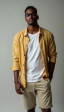 "black man in casual summer clothing city backdrop"
